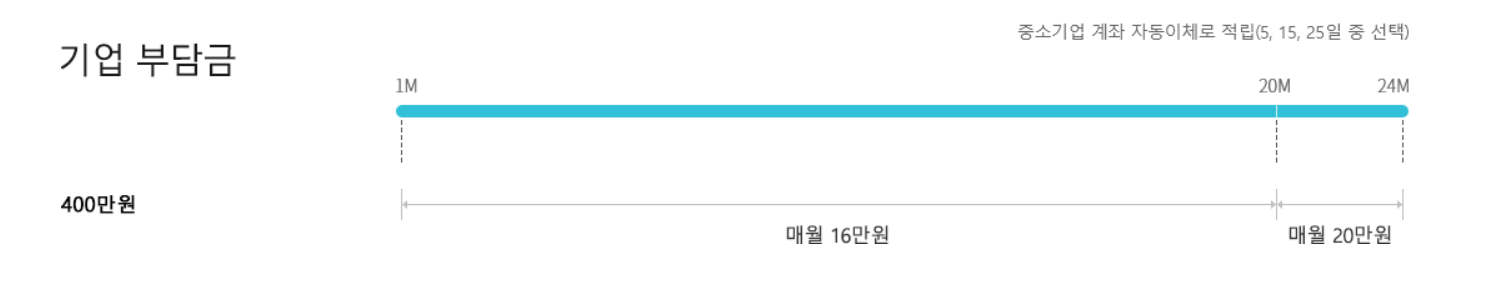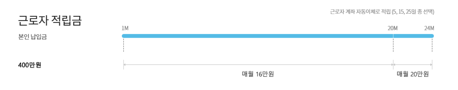 - 납입금액: 최초 20개월간 월 16만 원, 이후 4개월간 월 20만 원을 납입(2년간 총 400만 원)