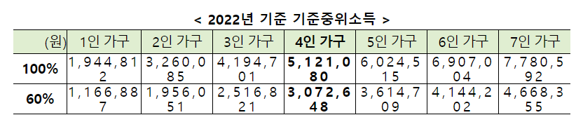 - 원가구 - 소득평가액 : 기준 중위소득 100% 이하 (3인가구 기준 419만 원/월) / 재산가액 : 3억 8천만 원 이하